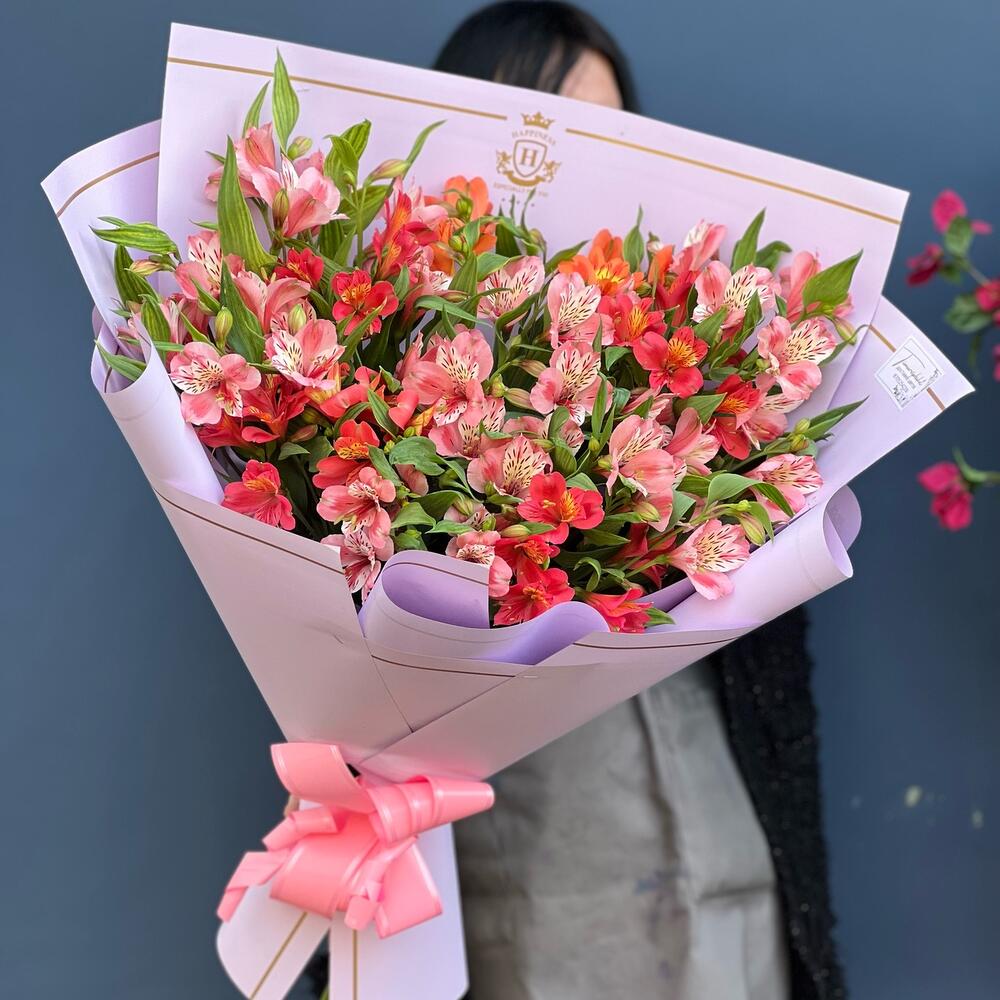 Альстромерия – 15 шт. Лента – 1 шт. Упаковка дизайнерская – 5 шт.