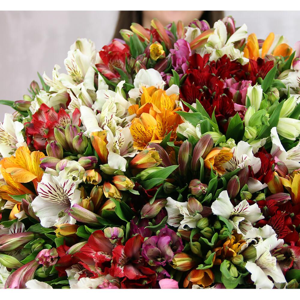 Букет из 101 яркой альстромерии микс в стильной упаковке