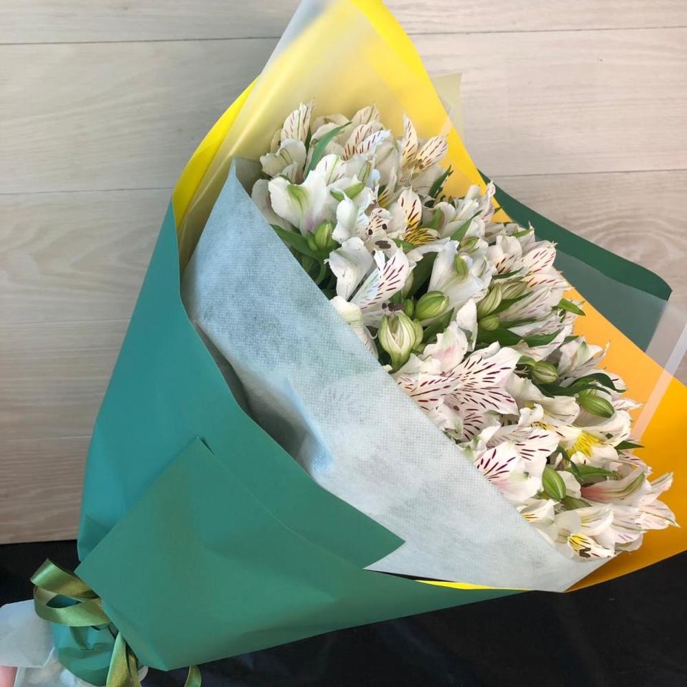 Альстромерия – 11 шт.Упаковка дизайнерская – 1 шт.Лента атласная – 1 шт.