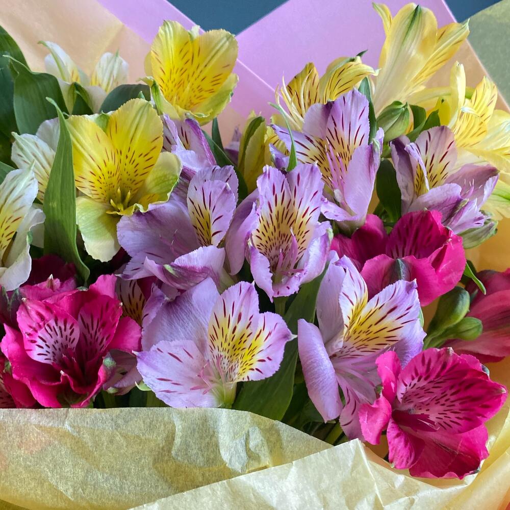 Яркий , вызывающий улыбку , моно букет с альстромерией – приятные комплимент коллеге или любимой