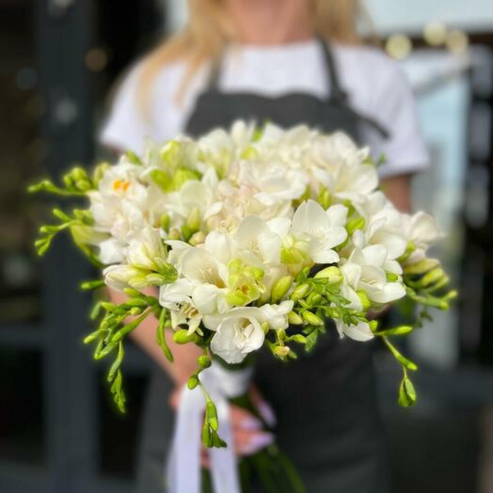 Фрезия – 31 шт.Атласная лента – 1 шт.