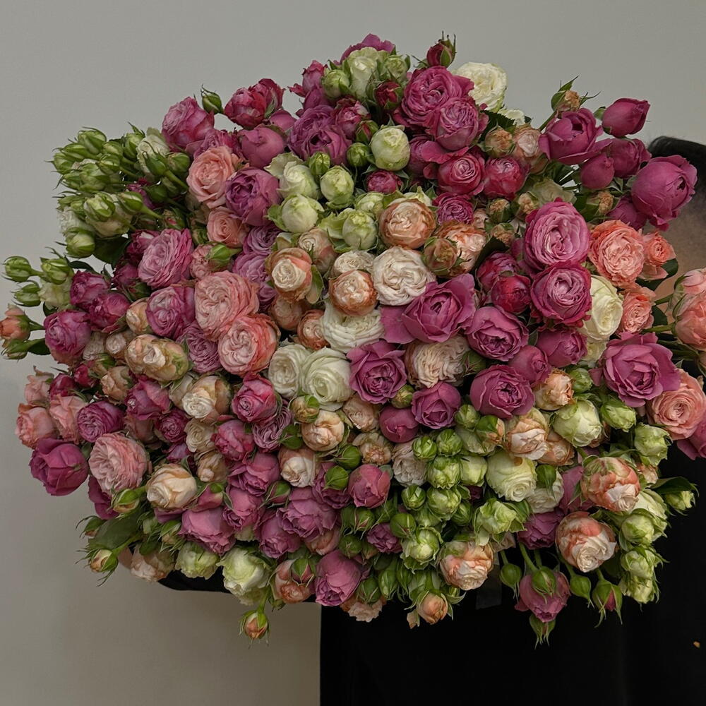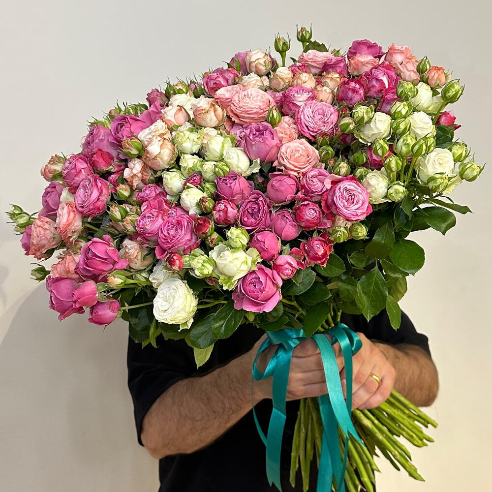 Альстромерии, Кустовые розы, Лизиантусы, Пионовидные розы, Розы, Ромашки