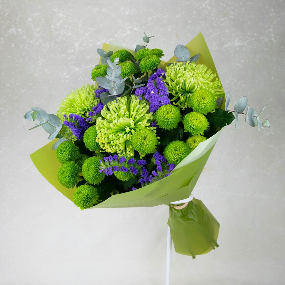 Зеленый букет с хризантемами