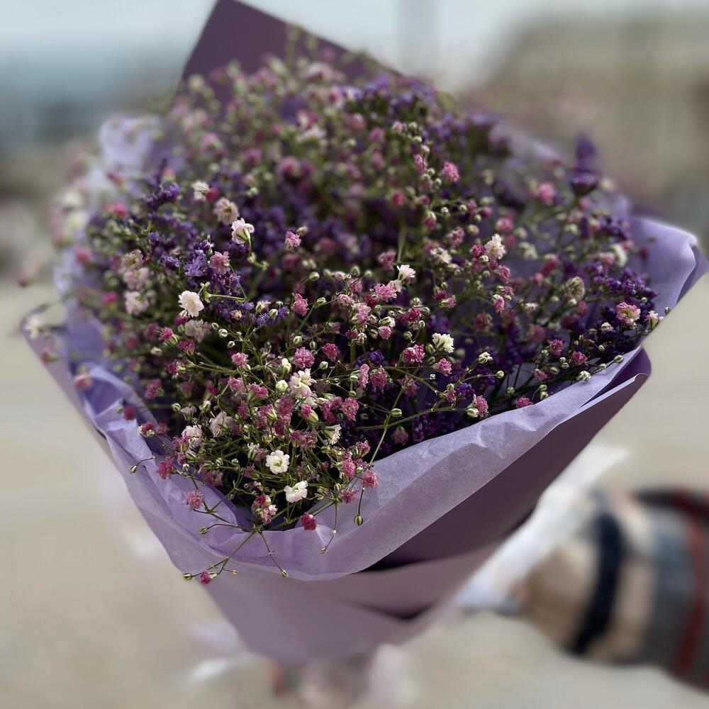 Мини букет из фиолетовой гипсофилы