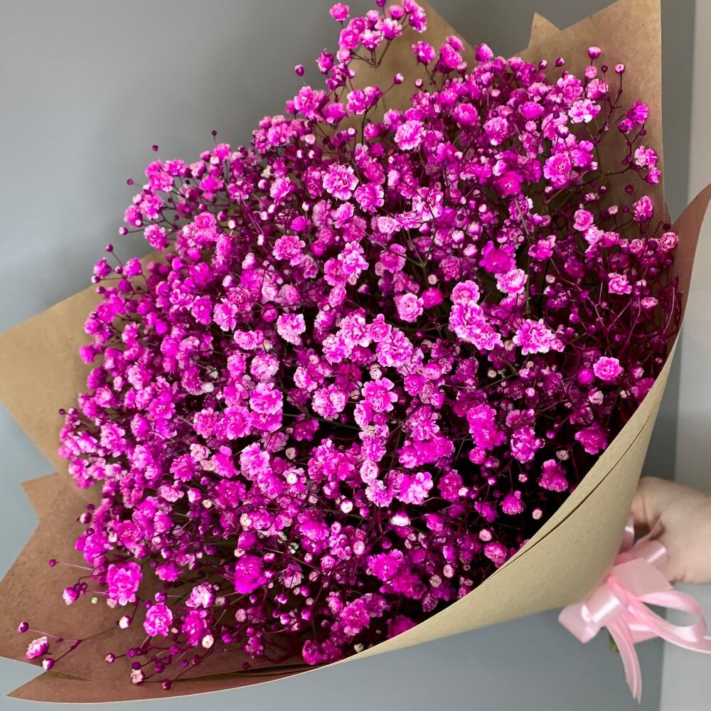 гипсофила радужная – 5 шт.Упаковка дизайнерская – 2 шт.Лента атласная – 2 шт.