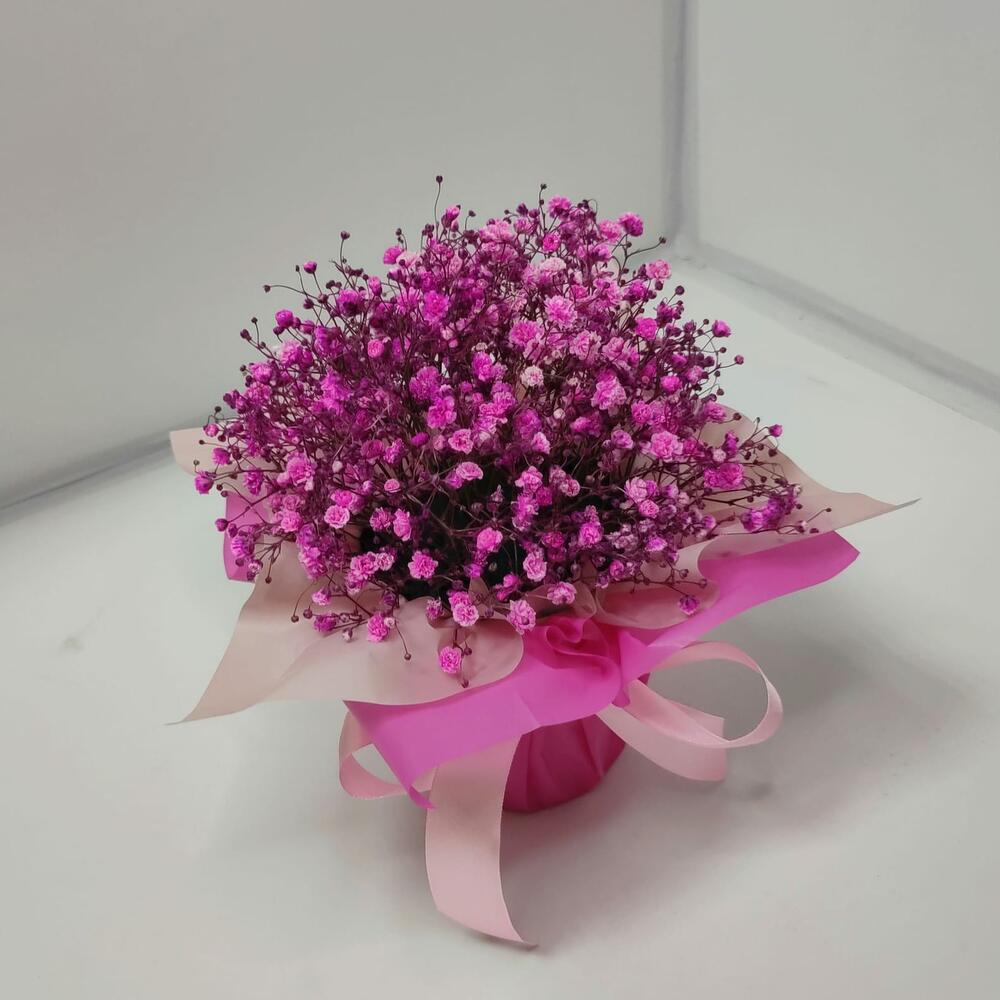 “Сиреневый туман” – композиция из гипсофилы в шляпной коробке