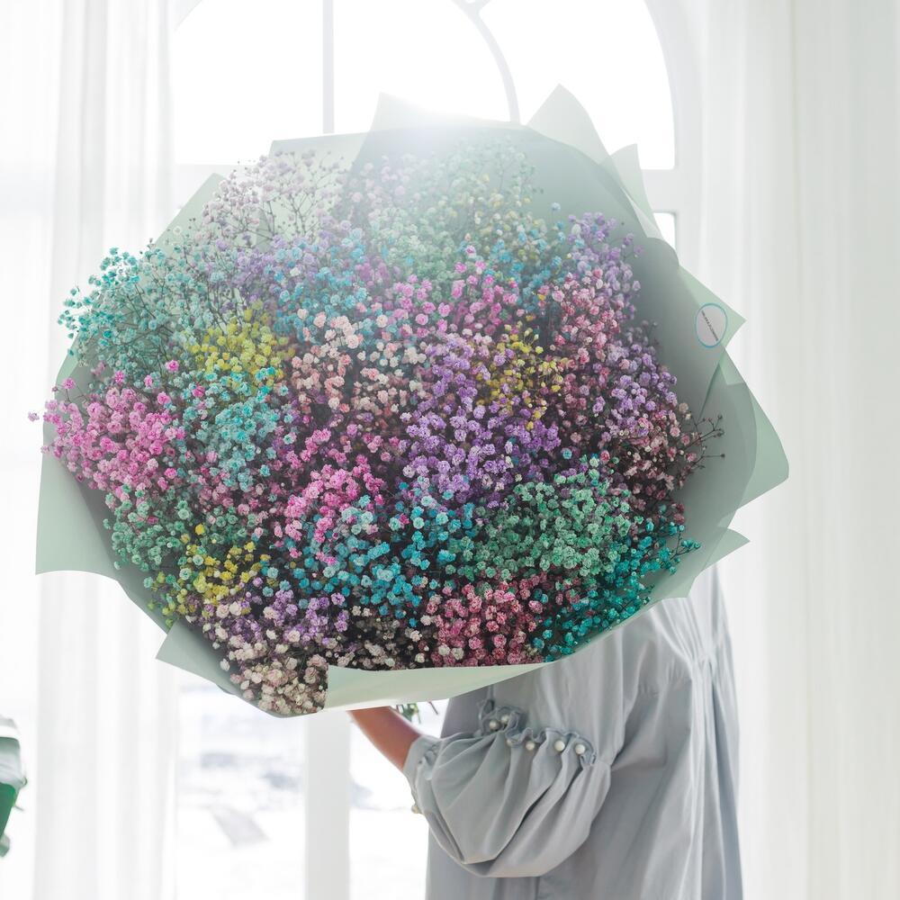 Шикарный букет из воздушной гипсофилы. Получатель точно не останется равнодушным при виде такого гиганта .Инструкция по уходу за цветами прикреплена к каждому заказу.Цветы гипсофилы отличаются стойкостью и даже при высыхании не теряют, декоративности и цвета. Что позволяет, долгое время украшать интерьер в качестве сухоцветов.Подпишем открытку с вашими пожеланиями бесплатно