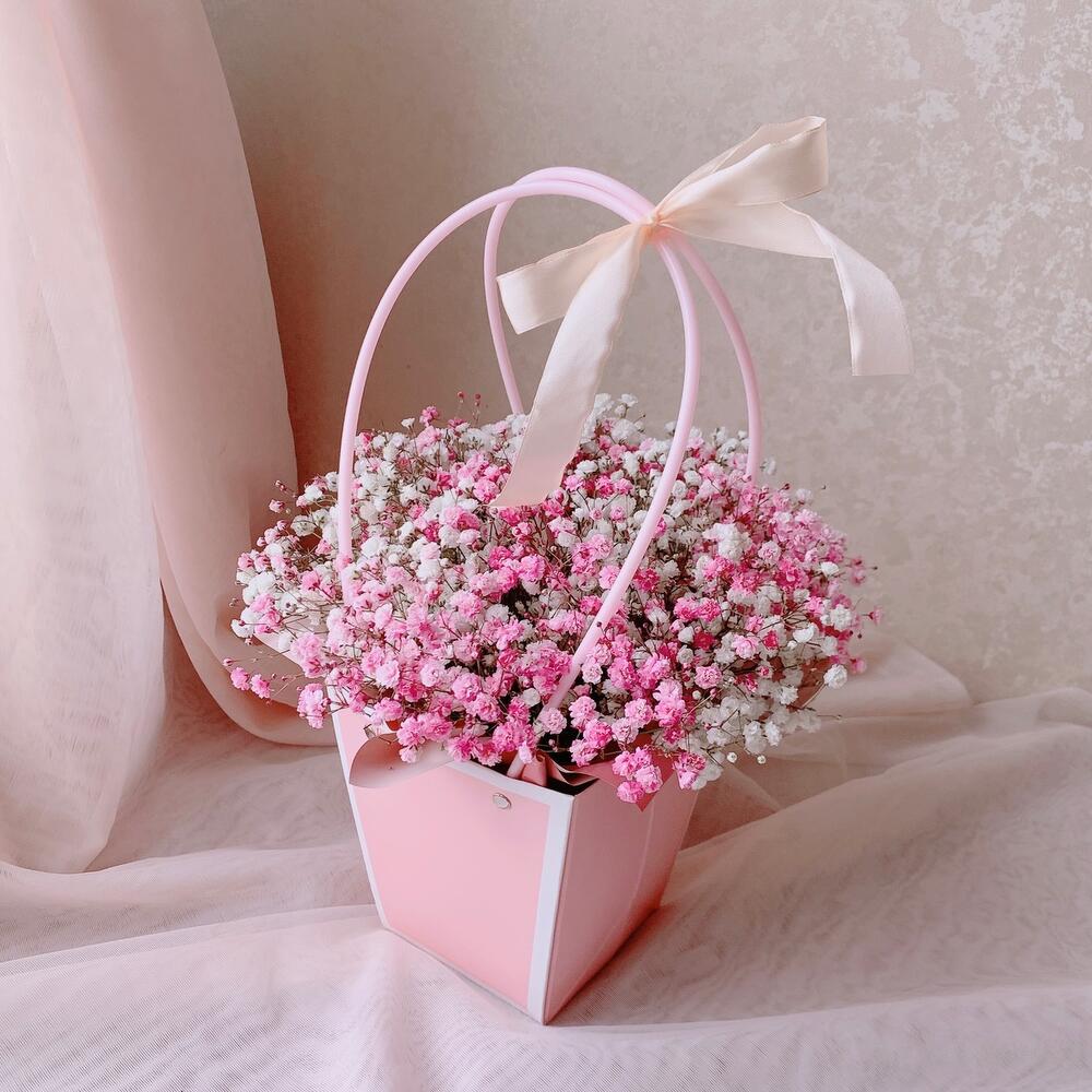 Розовая гипсофила в милой сумочке