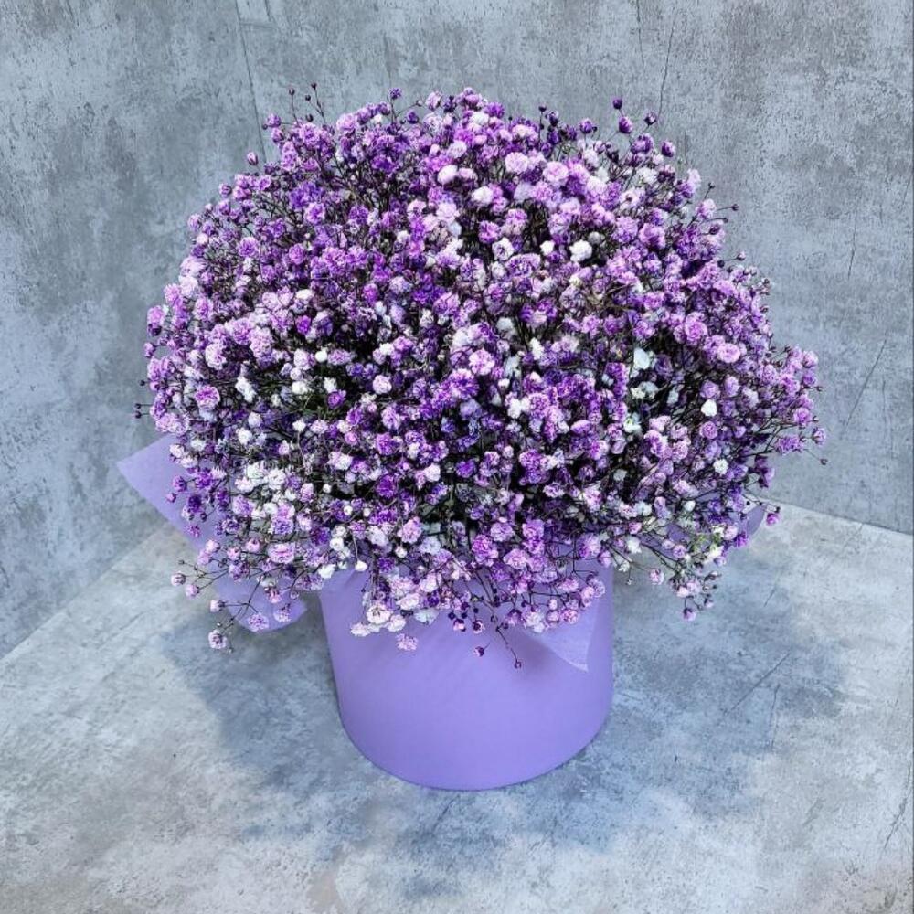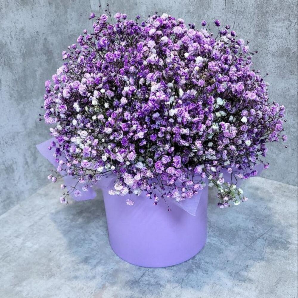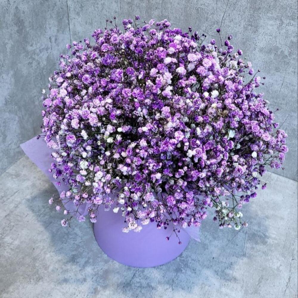 «Лавандовое созвездие» Букет из розы, гвоздики, статица и хлопка