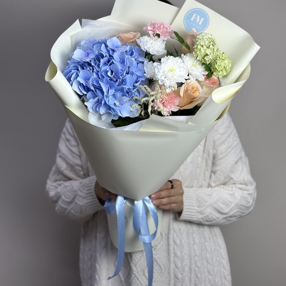Альстромерии, Гвоздики, Кустовые розы, Лизиантусы, Розы, Хризантемы