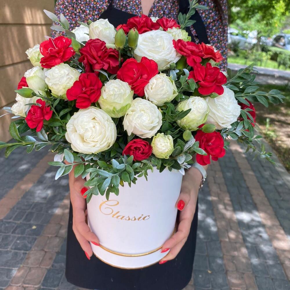 Гвоздики, Кустовые розы, Лизиантусы, Пионовидные розы, Розы