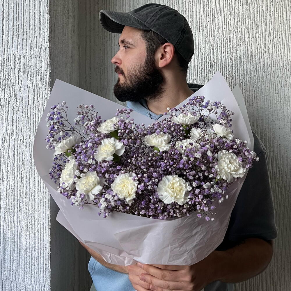 15 лавандовых гвоздик с эвкалиптом (букет N 24)