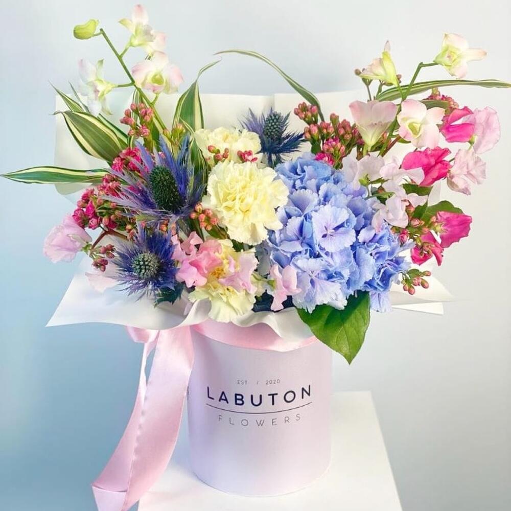 "Атлас☁️" - цветочная композиция с зефиром в деревянном ящике