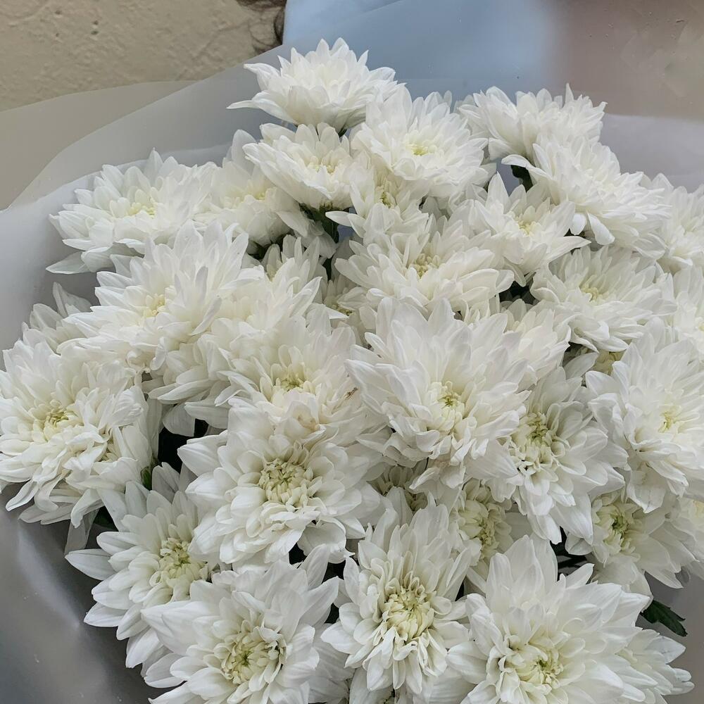 9 белых кустовых хризантем
