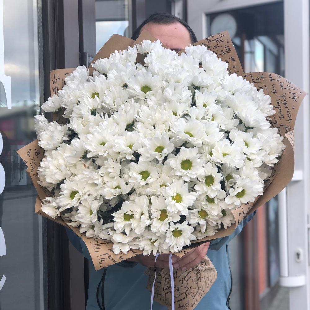 Белоснежная хризантема в стильной упаковке!