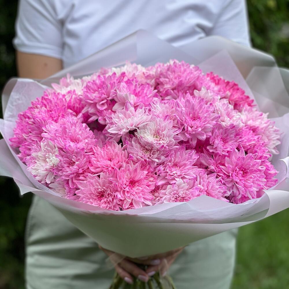 Тишью – 2 шт.Пленка матовая – 2 шт.Хризантема крашеная – 15 шт.