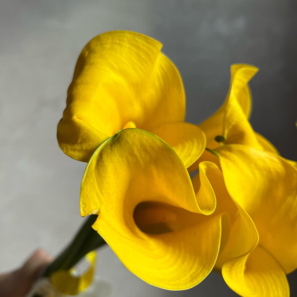 Атласная лента – 1 шт.каллы желтые – 5 шт.