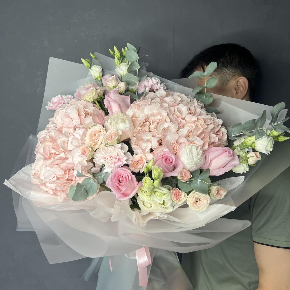 Гвоздики, Кустовые розы, Лизиантусы, Пионовидные розы, Розы