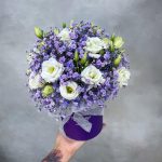Гипсофила – 7 шт.Лизиантус – 5 шт.Оазис – 1 шт.Коробка d12 – 1 шт.