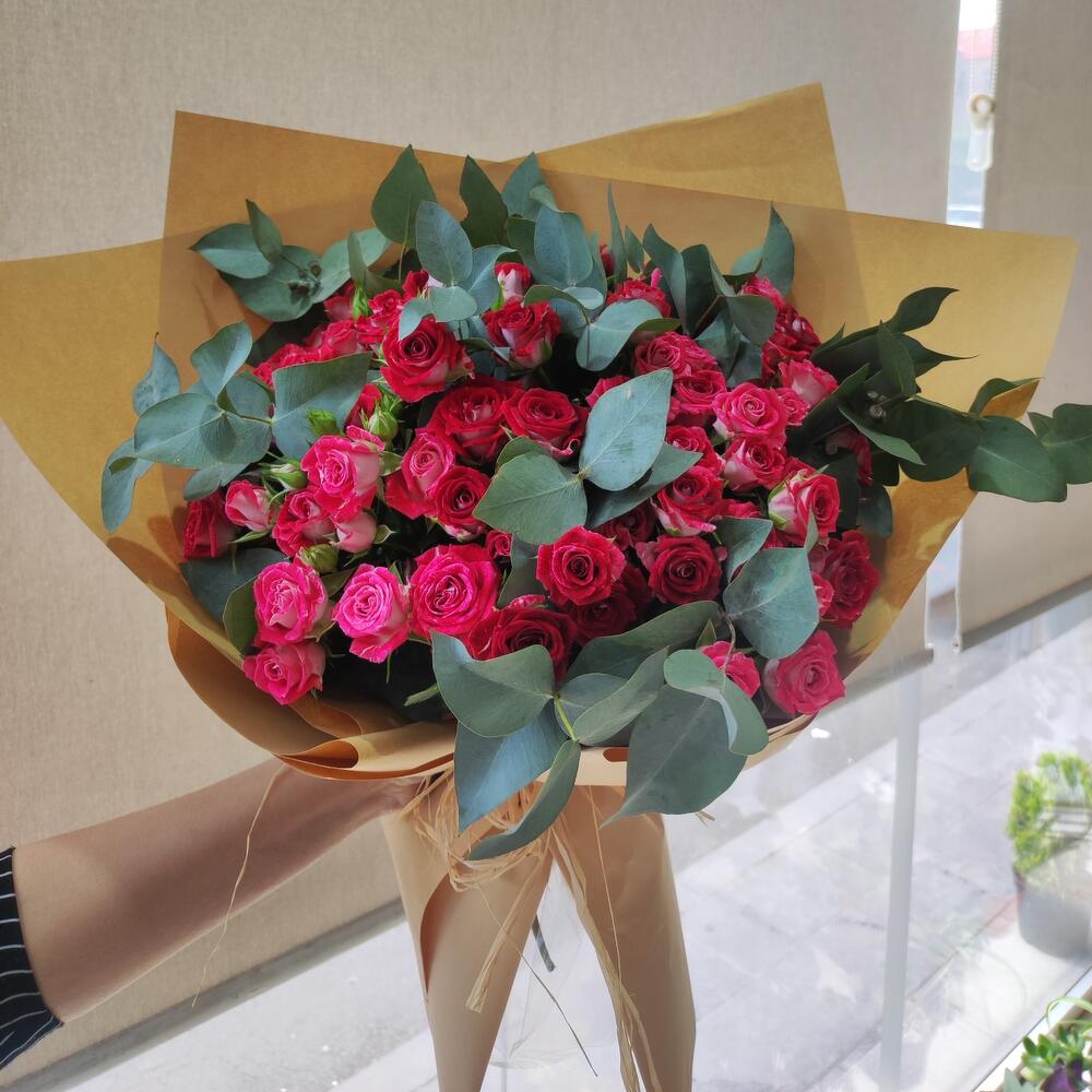 Роза кустовая – 20 шт. Эвкалипт – 10 шт.
