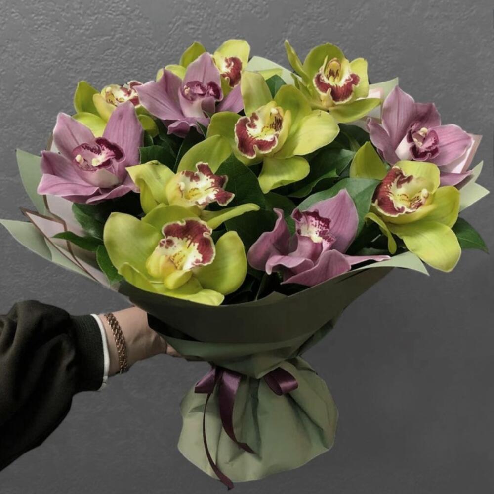 Букет из зеленых и розовых Орхидей