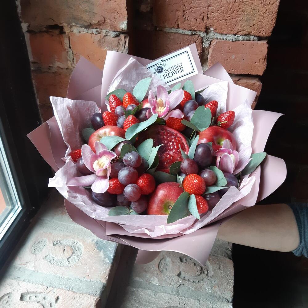 Съедобный букет из орхидей, фруктов и ягод “Сливовица”