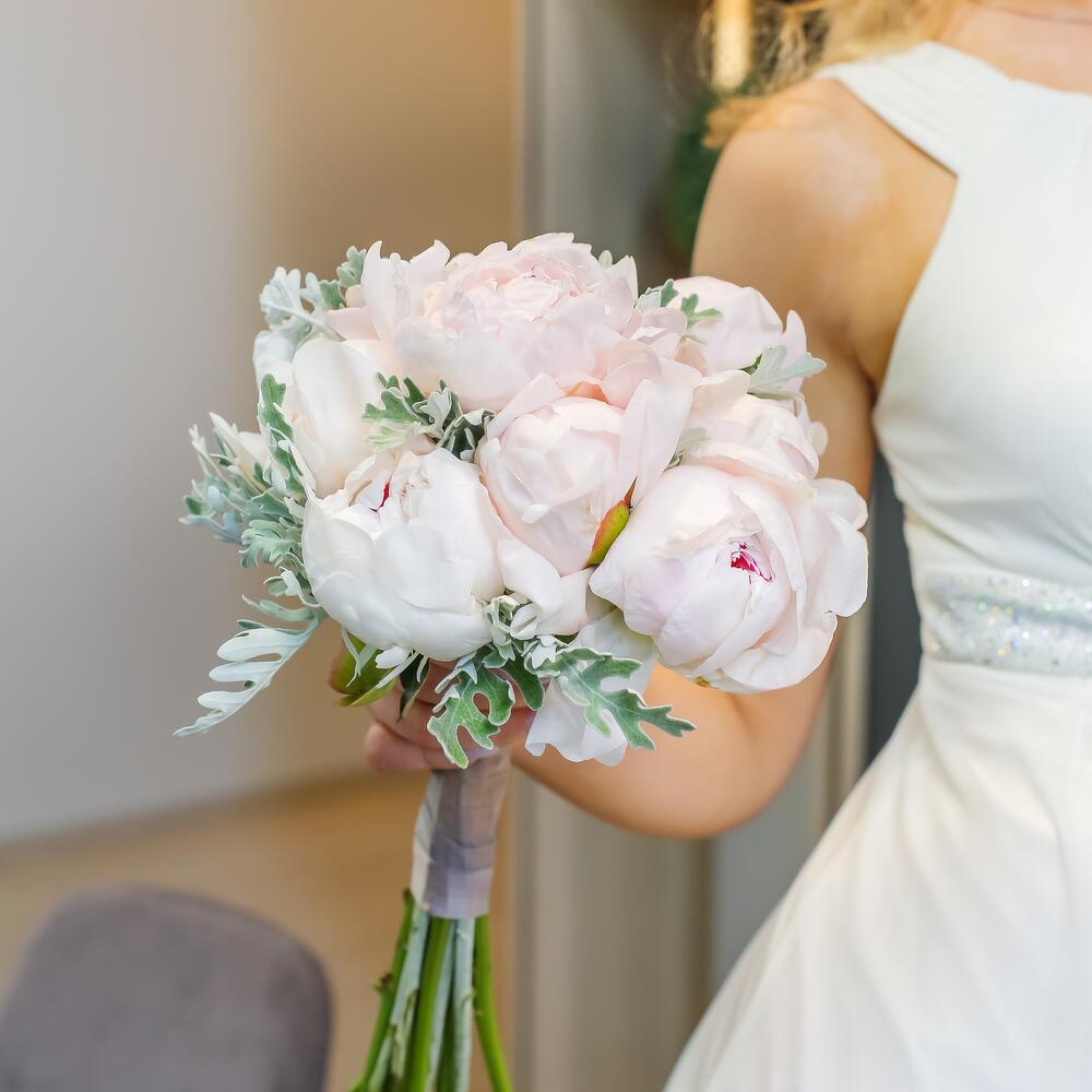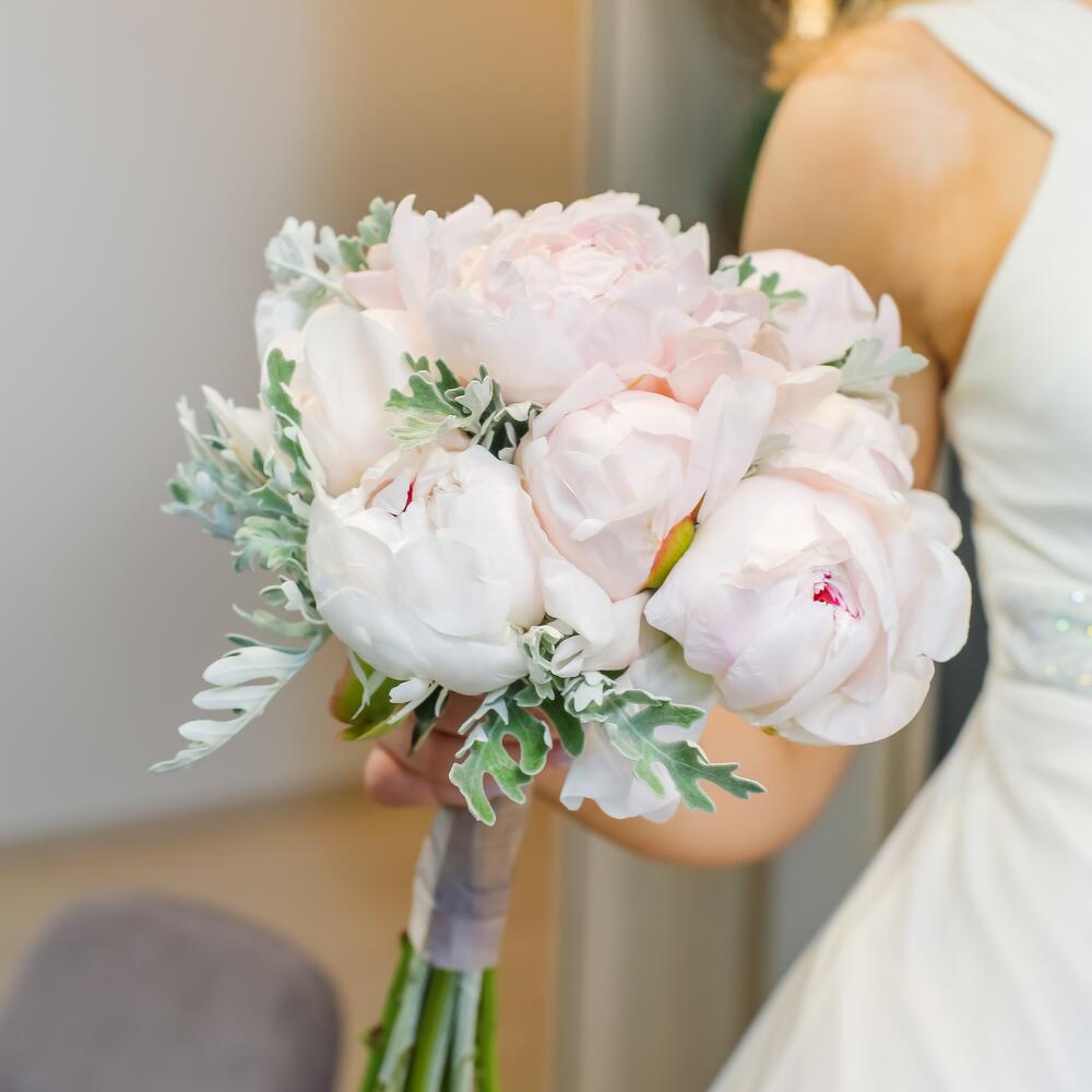 Ароматный букет из нежных пионов с добавлением очень нежной зелени.