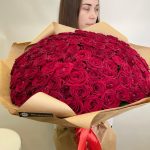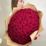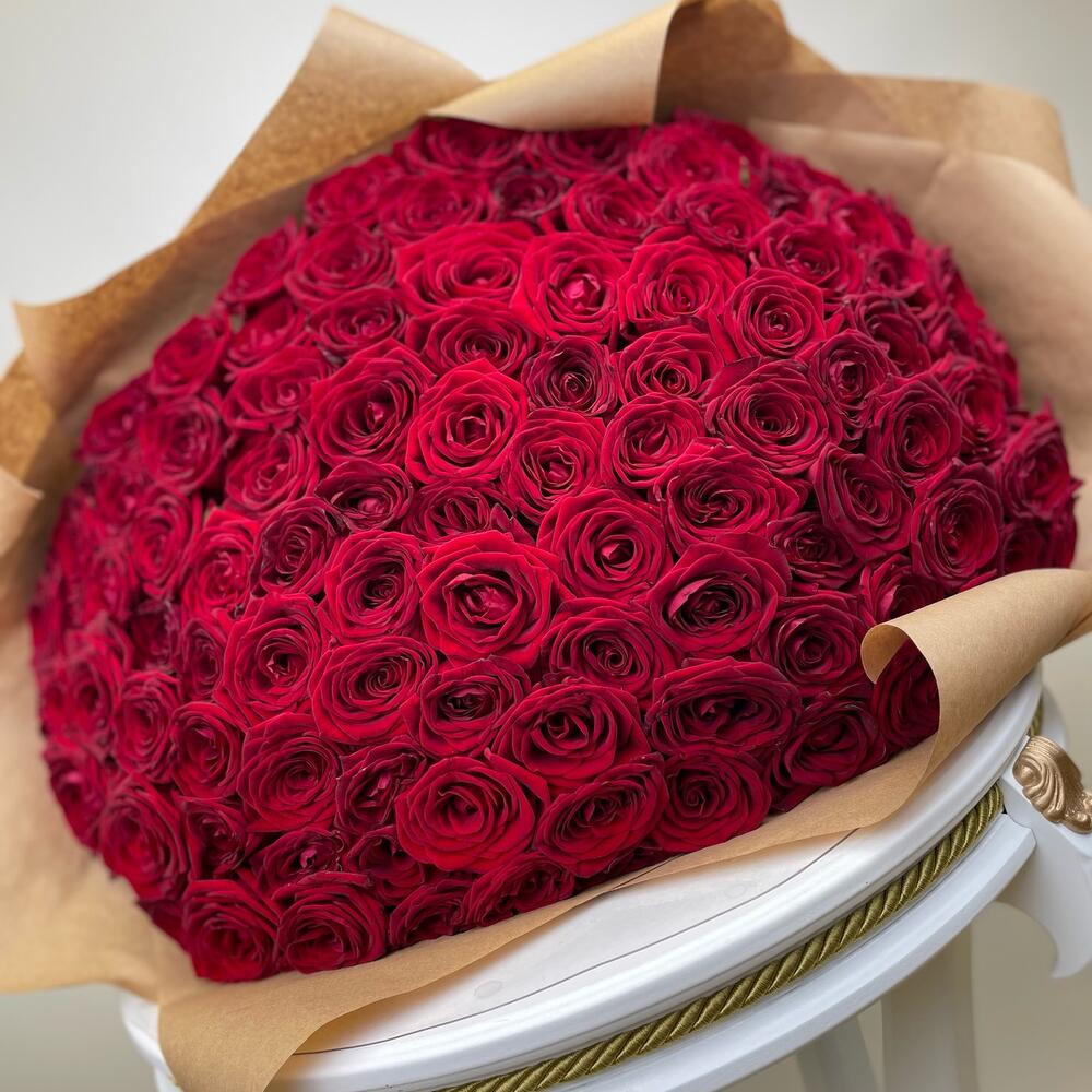 Упаковка дизайнерская – 3 шт.Лента атласная – 2 шт.Открыточка с вашими пожеланиями – 1 шт.роза ред наоми. – 101 шт.