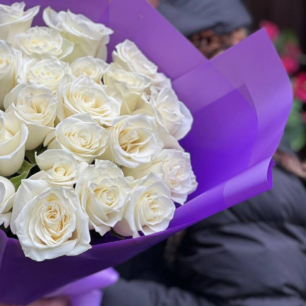 Нежный букет из белоснежных ароматных голландских роз станет замечательным подарком для ваших родных и близких