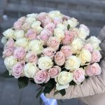 Букет из 51 бело-розовой розы сорта Mondial и Pink Mondial