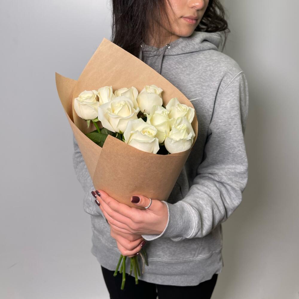 Крафт – 1 шт.Белая роза 50 см – 9 шт.