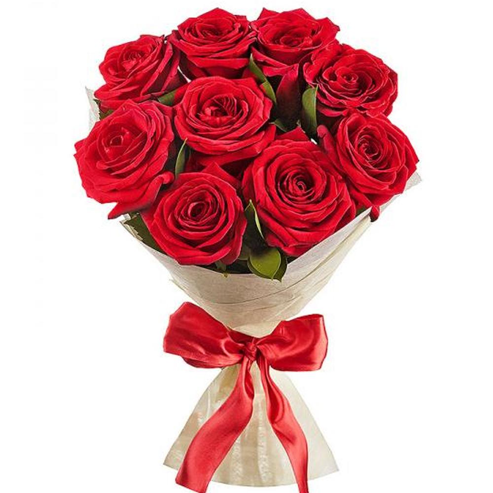 9 красных роз 60-70 см