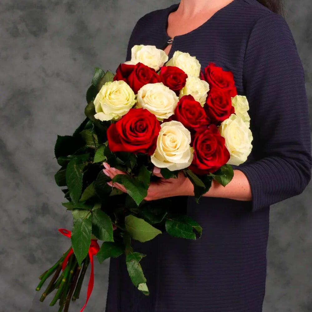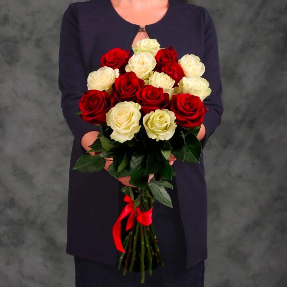 Букет 15 красных и белых роз.