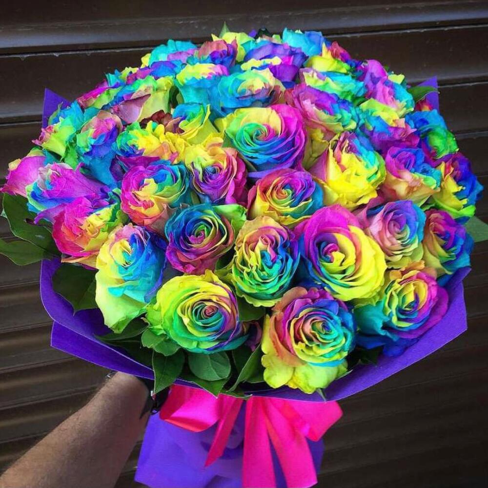 радужные розы – 51 шт.