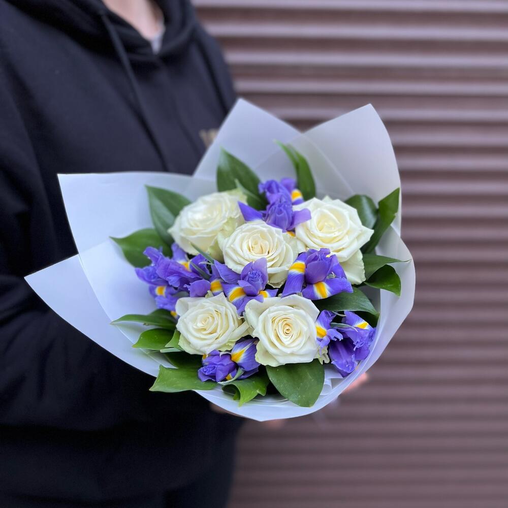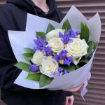 Букет из роз с ирисами
