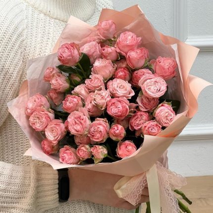 Букет кустовых пионовидных розовых роз «Очаровательной Леди»