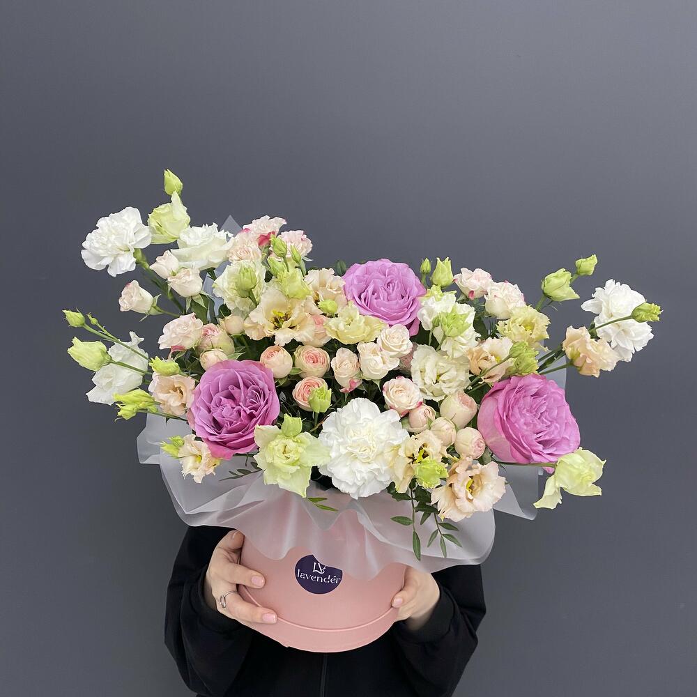 Альстромерии, Кустовые розы, Лизиантусы, Пионовидные розы, Розы, Ромашки