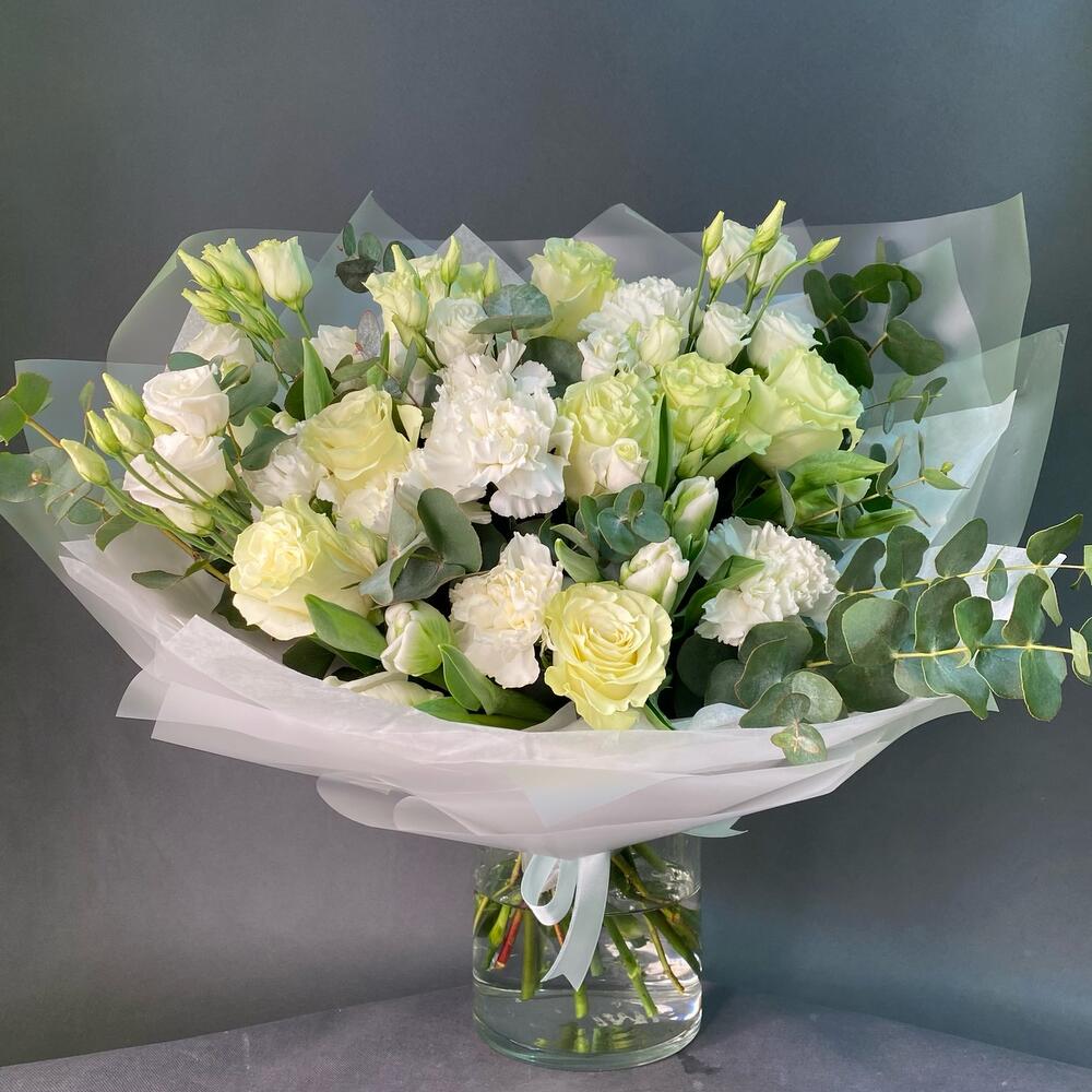 Категории: Гвоздики, Лизиантусы, Розы