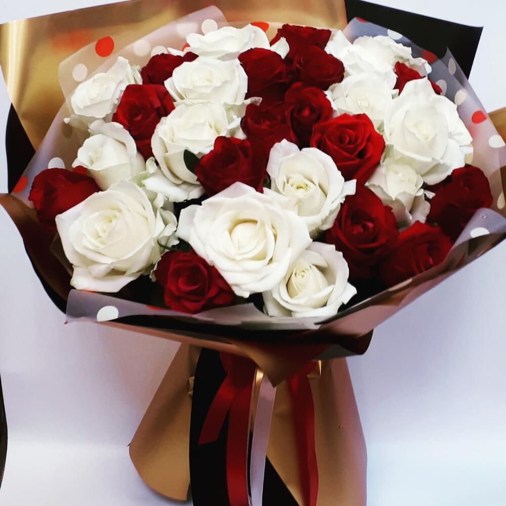 розы красные и белые – 25 шт.Упаковка дизайнерская – 2 шт.