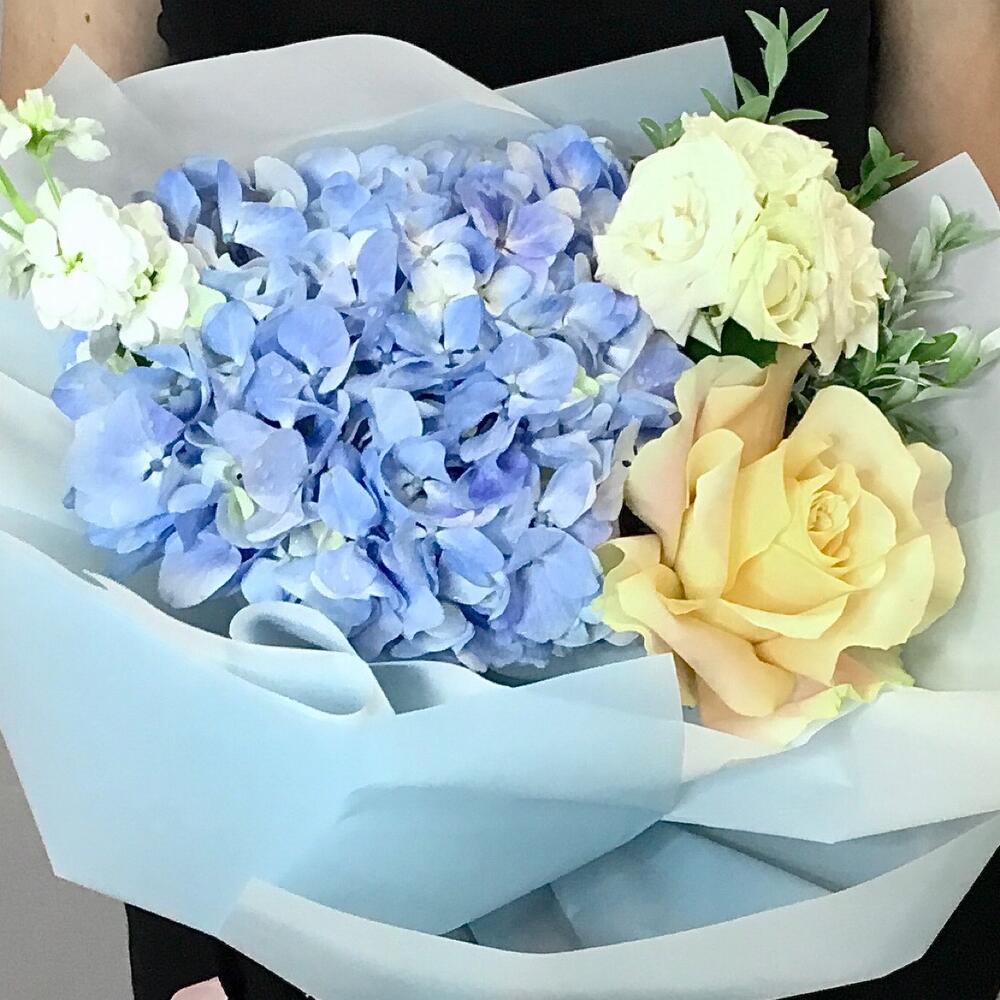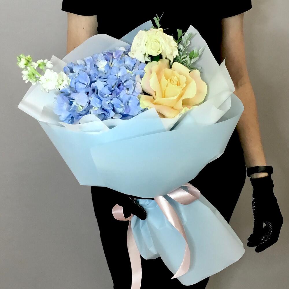 Букет с гортензией и розами «Янь»
