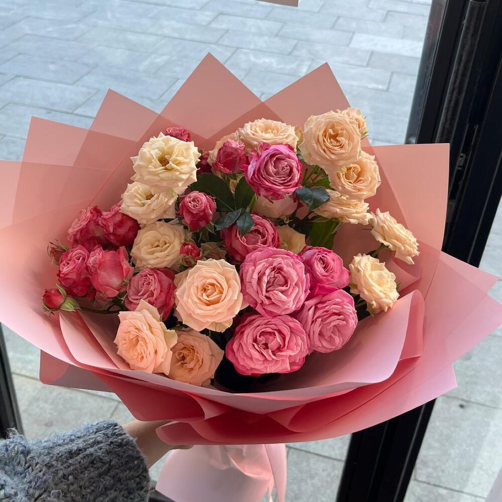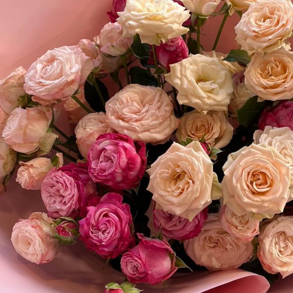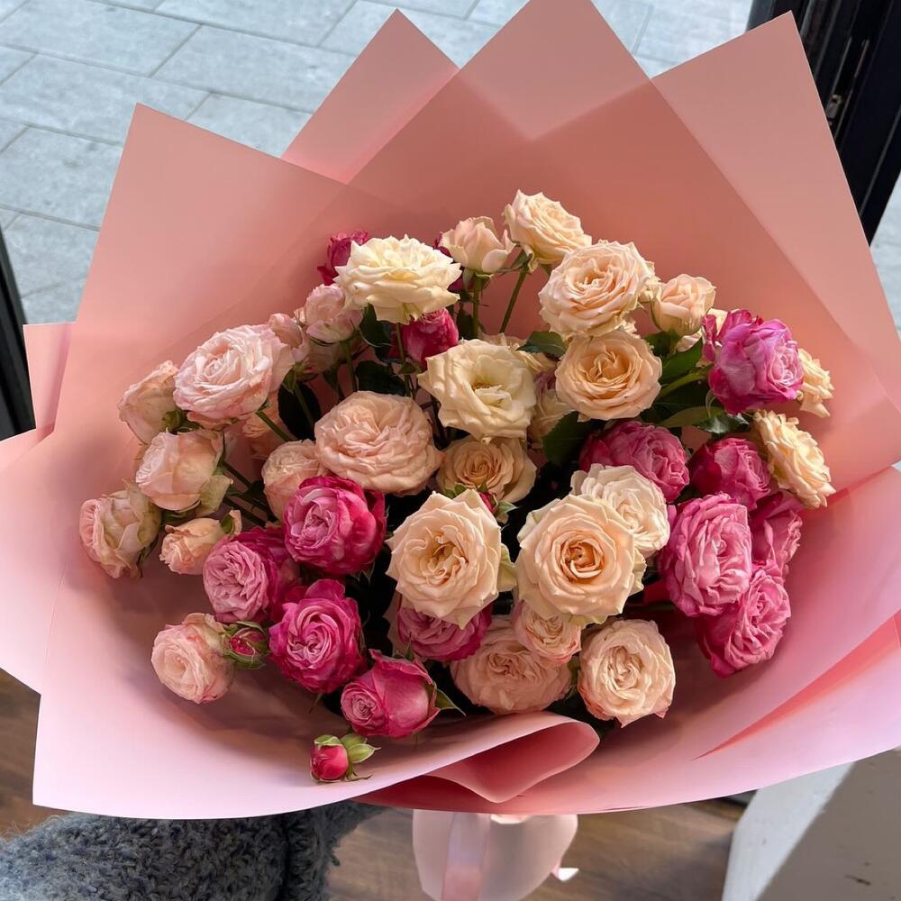 Гвоздики, Кустовые розы, Лизиантусы, Пионовидные розы, Розы