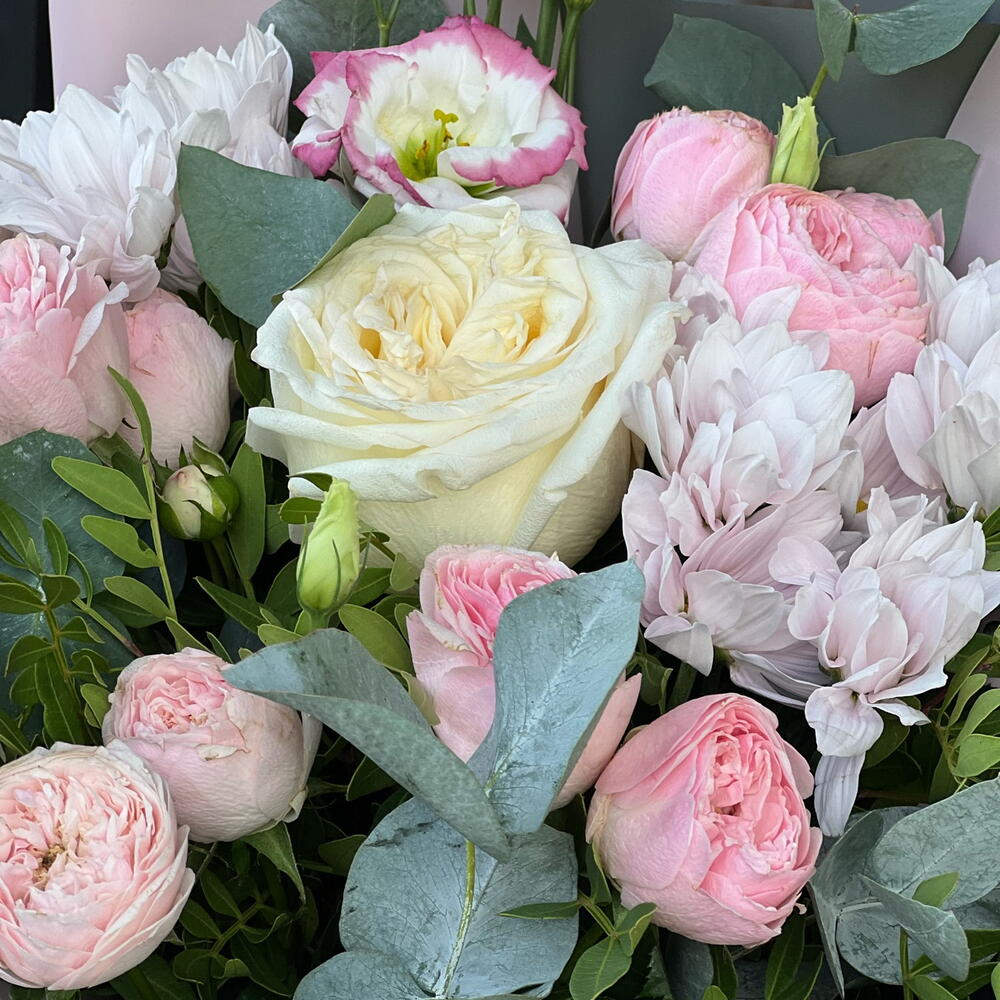 Гвоздики, Кустовые розы, Пионовидные розы, Розы