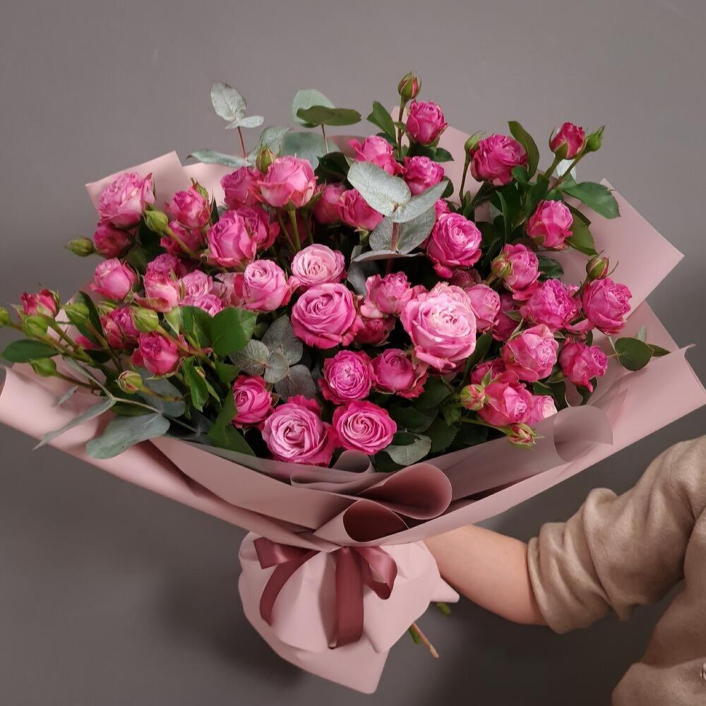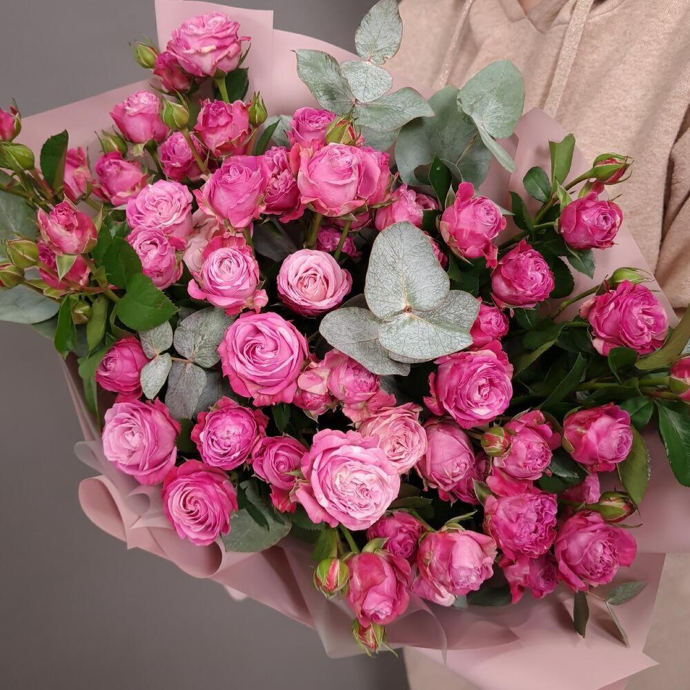 Категории: Кустовые розы, Пионовидные розы, Розы, Эвкалипт
