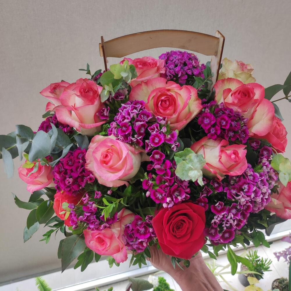 Гвоздики, Кустовые розы, Пионовидные розы, Розы