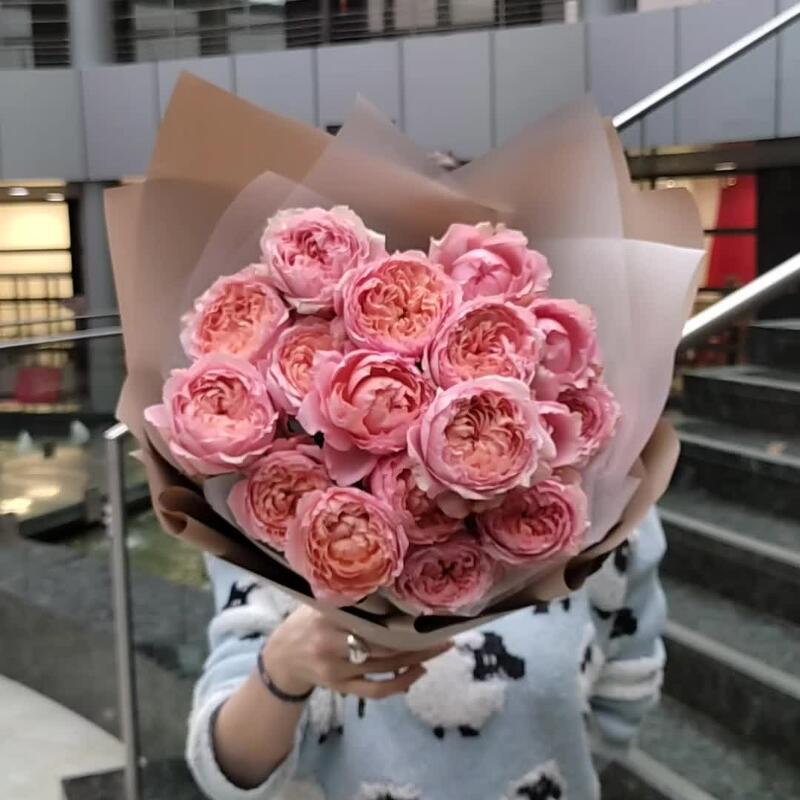 Роза пионовидная кустовая – 5 шт.Упаковка – 2 шт.Лента – 2 шт.