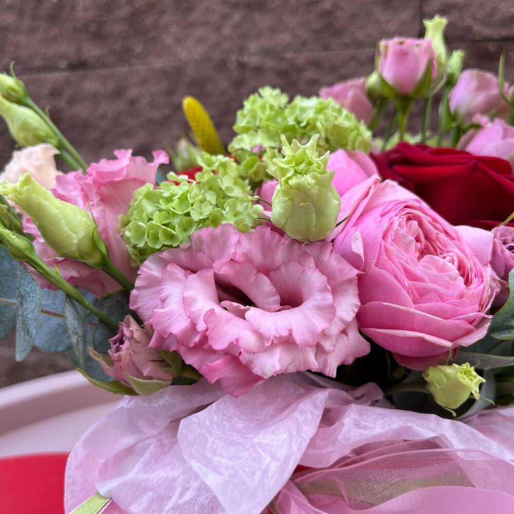 Гвоздики, Кустовые розы, Лизиантусы, Пионовидные розы, Розы