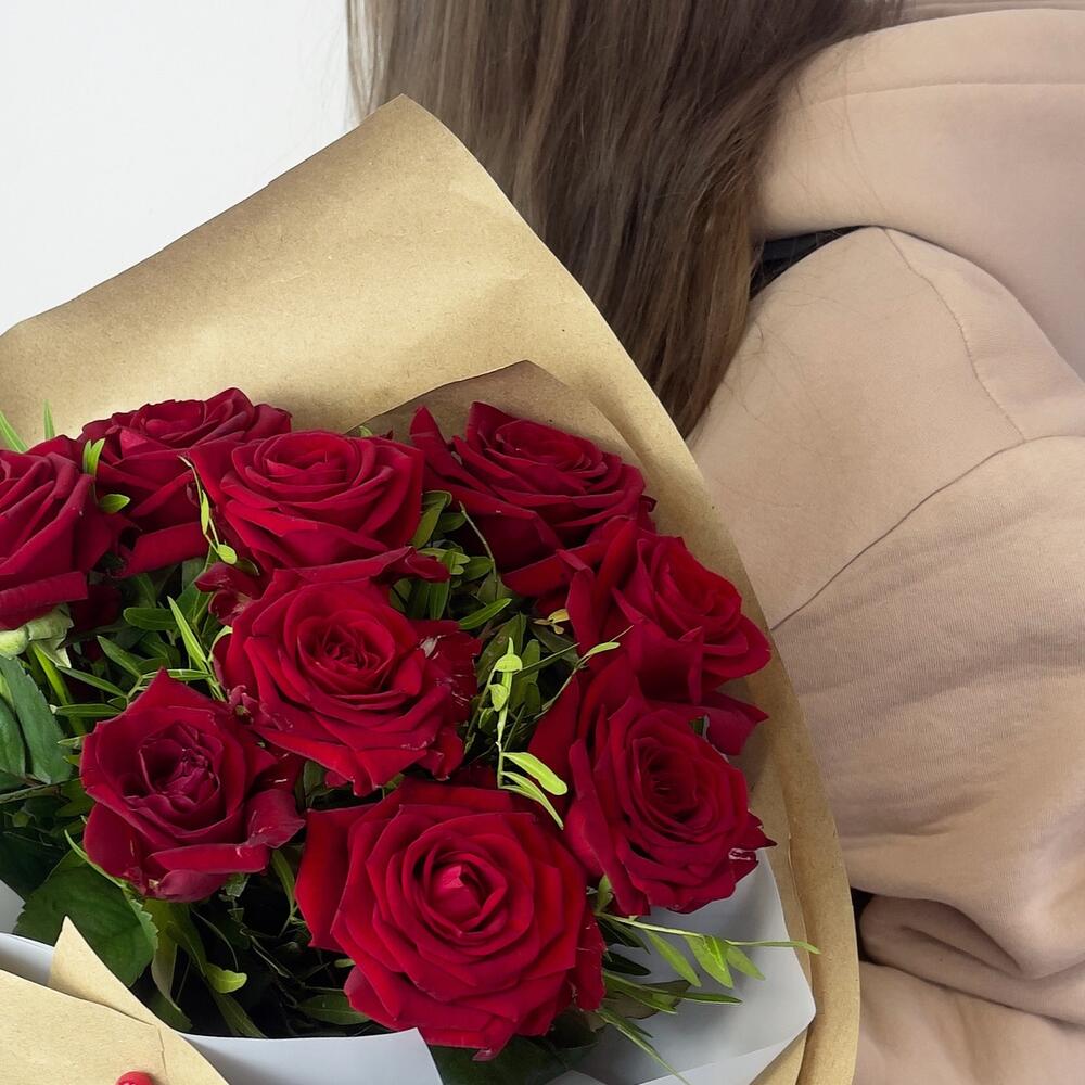 Красные розы в крафте