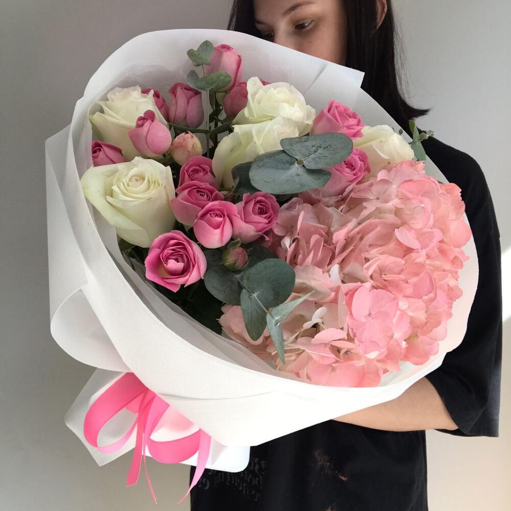 Гвоздики, Пионовидные розы, Розы