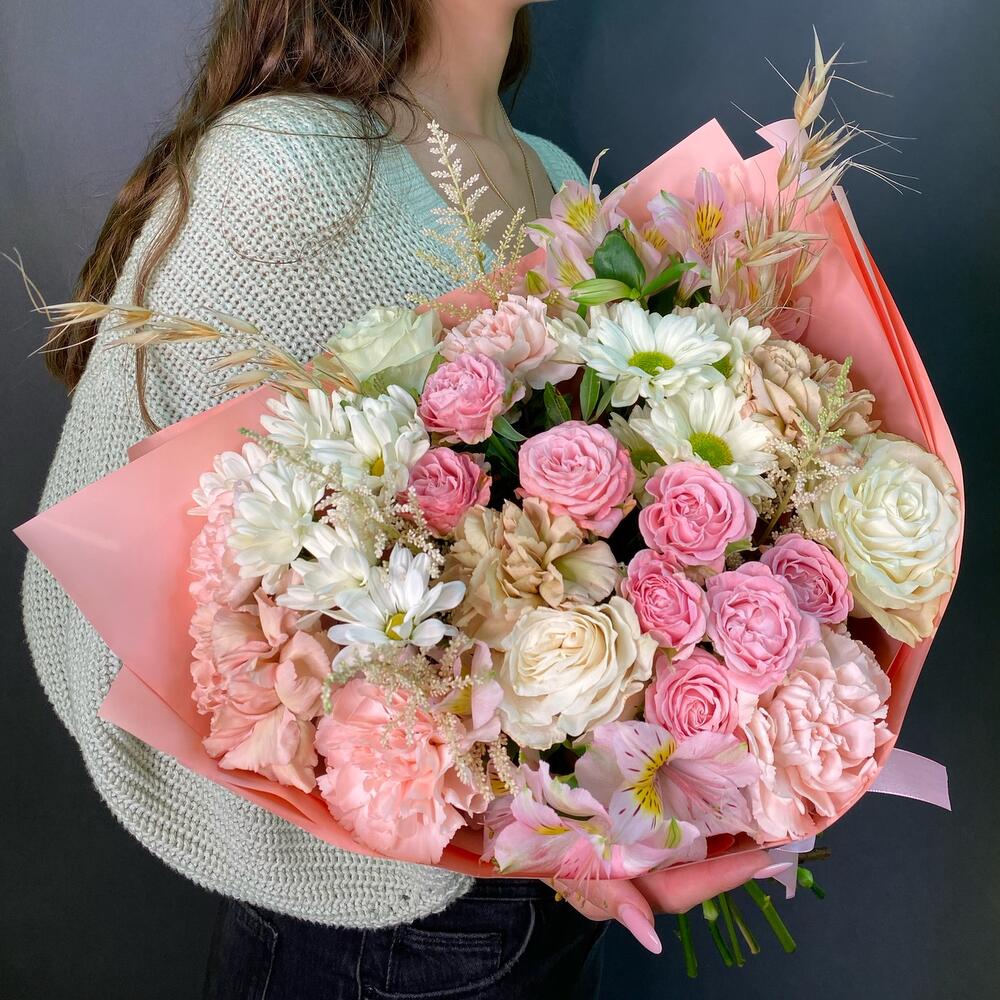 Категорий: Альстромерии, Гвоздики, Кустовые розы, Розы, Хризантемы