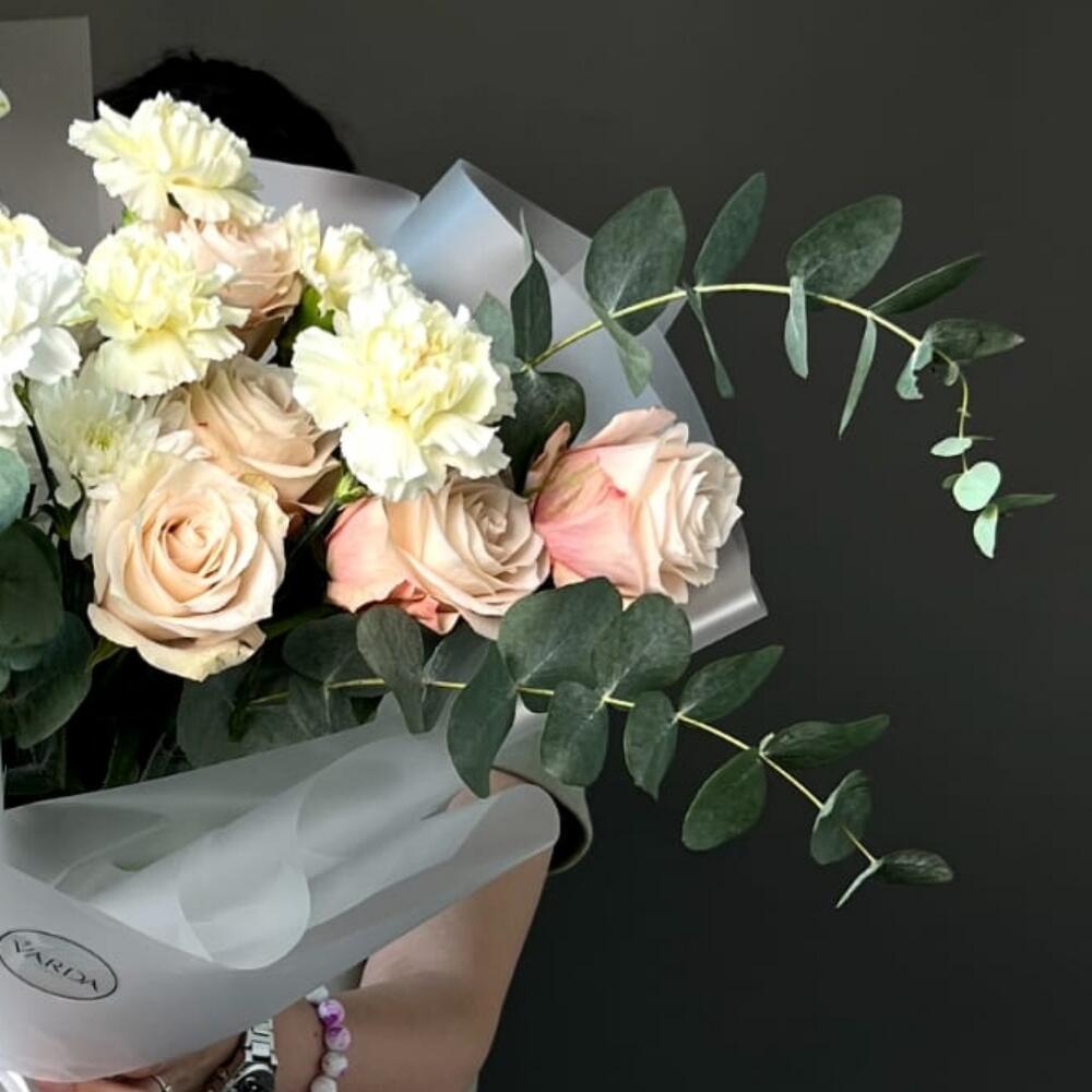 Гвоздики, Кустовые розы, Пионовидные розы, Розы